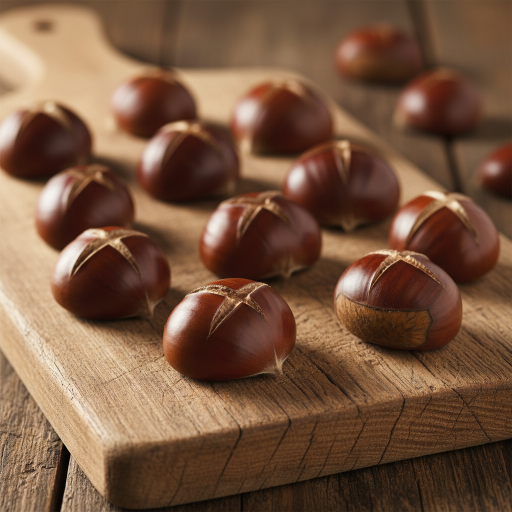 Realiza el corte en cruz característico en las castañas antes de asarlas, evitando que exploten y facilitando su pelado posterior.