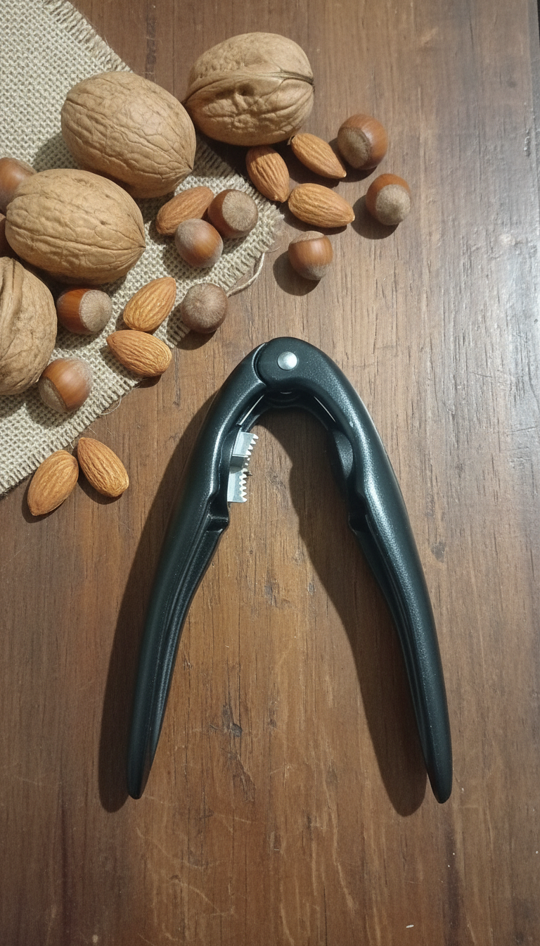 Para cascar frutos secos: Coloca la nuez, almendra o avellana en el centro del mecanismo de cuchillas en cruz. Presiona suavemente los mangos hasta escuchar el crujido de la cáscara al romperse. Retira los trozos de cáscara y disfruta del fruto fresco.