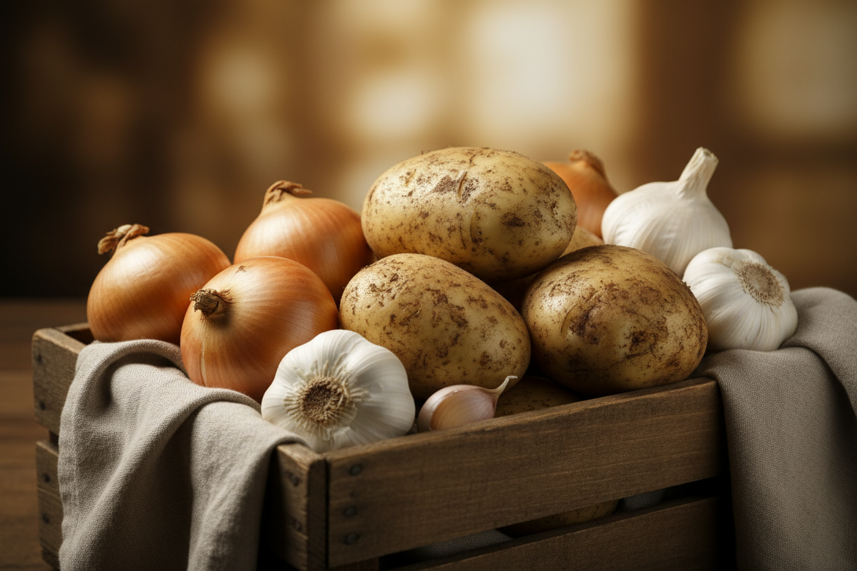 💡 Consejo profesional: No guardes las patatas junto a las cebollas, ya que ambas liberan gases que pueden acelerar su deterioro. Mantenlas separadas para prolongar su frescura.